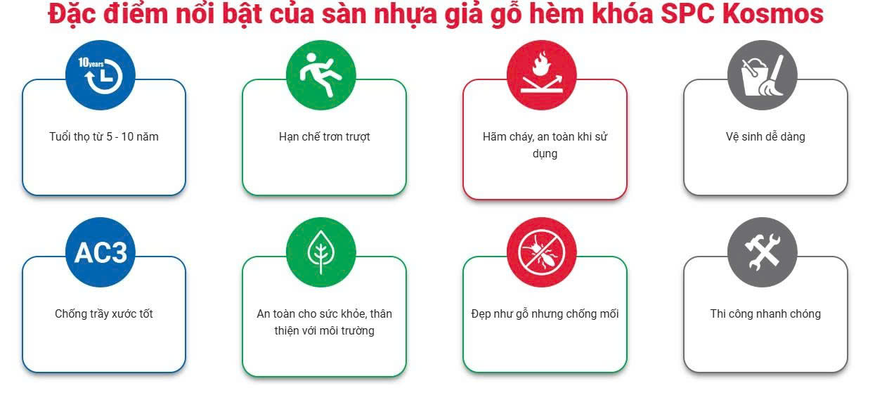 * Đặc điểm nổi bật của sàn nhựa hèm khóa Kosmos 4mm SPC - 5005